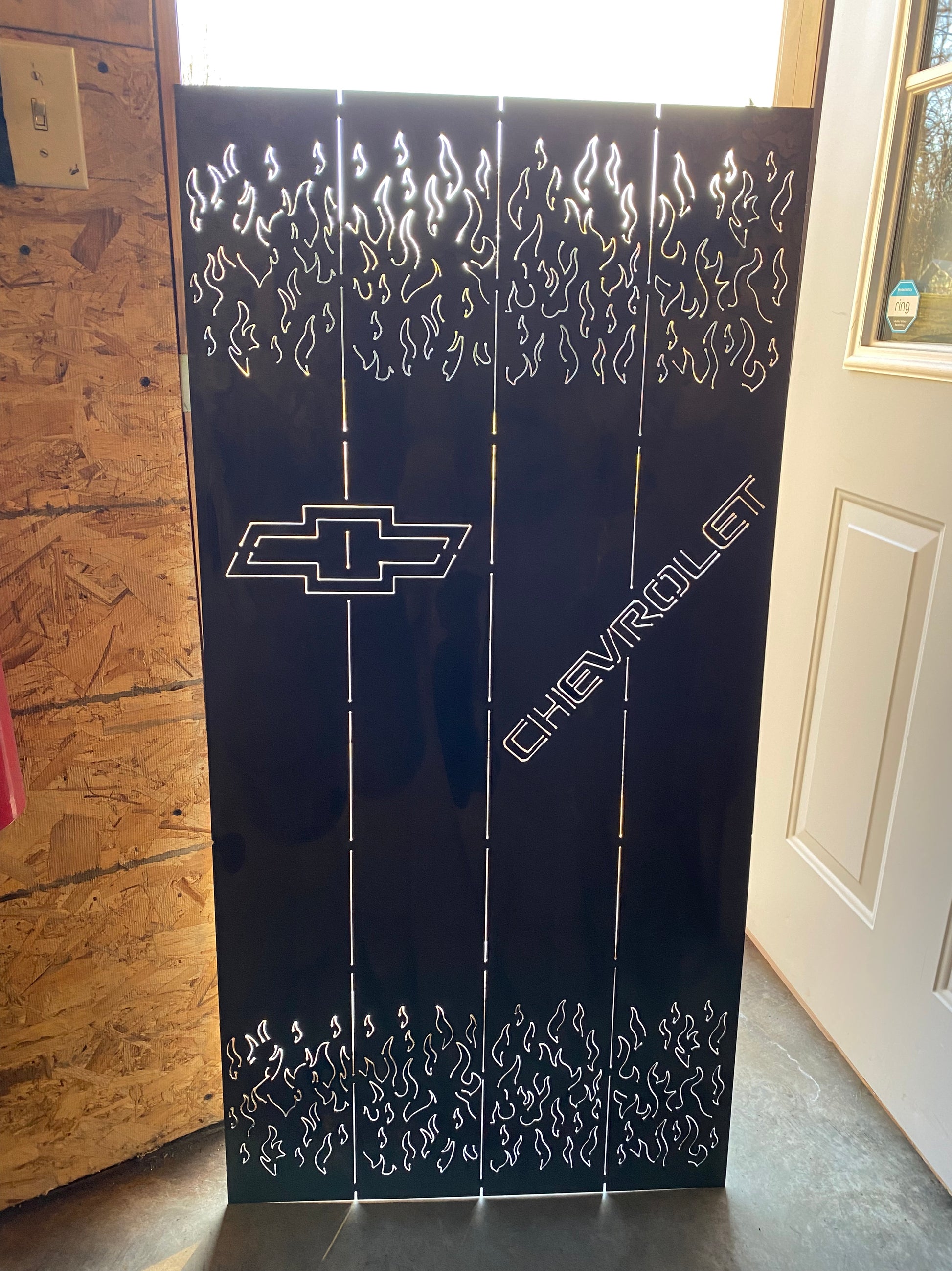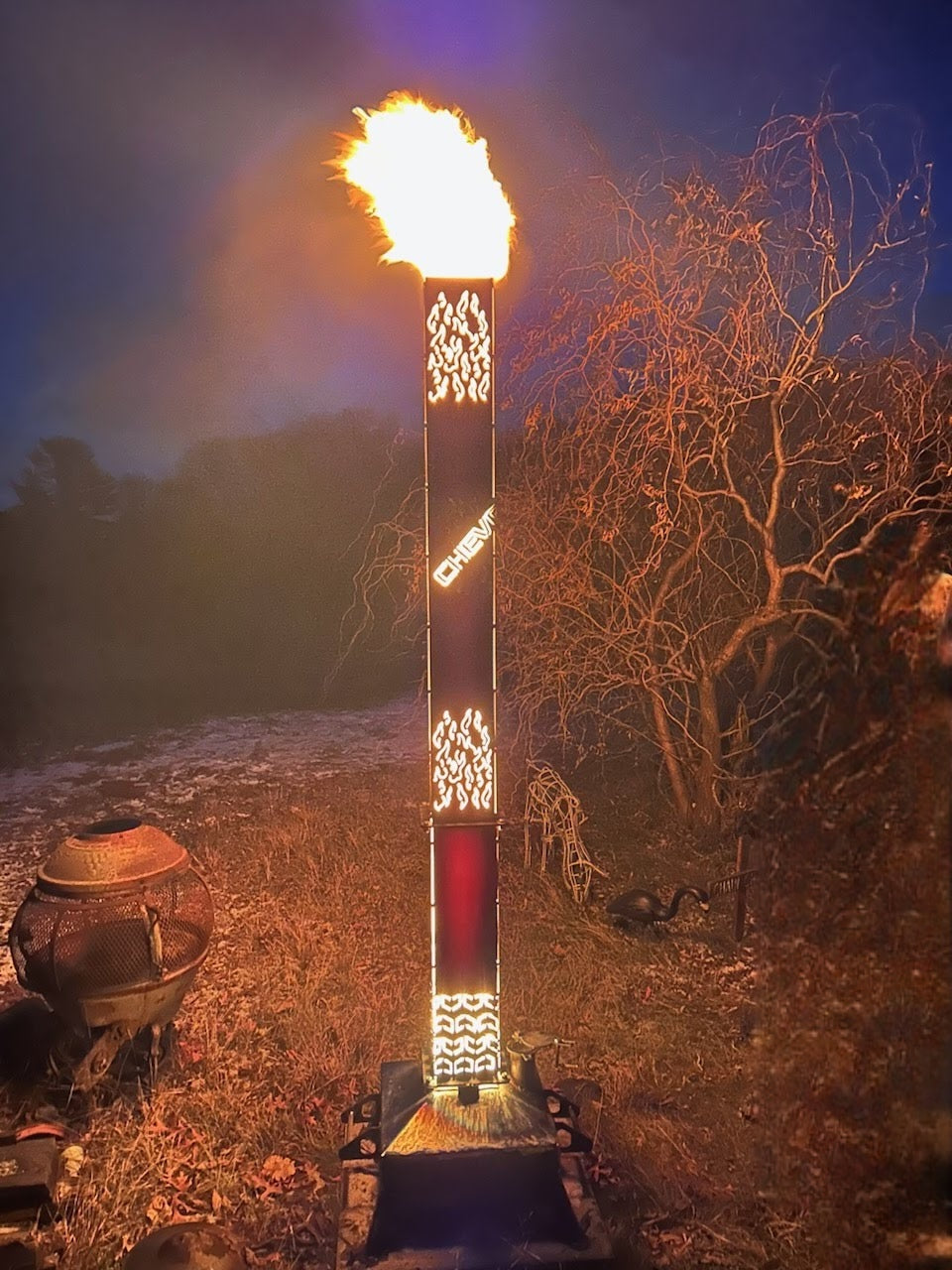 DIY Smudge Pot weld it Yourself and save. Pick from a 5 gallon or 10 gallon base. Both bases have a 20” x 20” footprint. This 48" Chimney comes a Chevrolet cutout and flames on the top and bottom. All parts are CNC cut and easily bent by hand with relief cuts designed in, the chimney comes pre-bent, tack it all together then final weld it.
