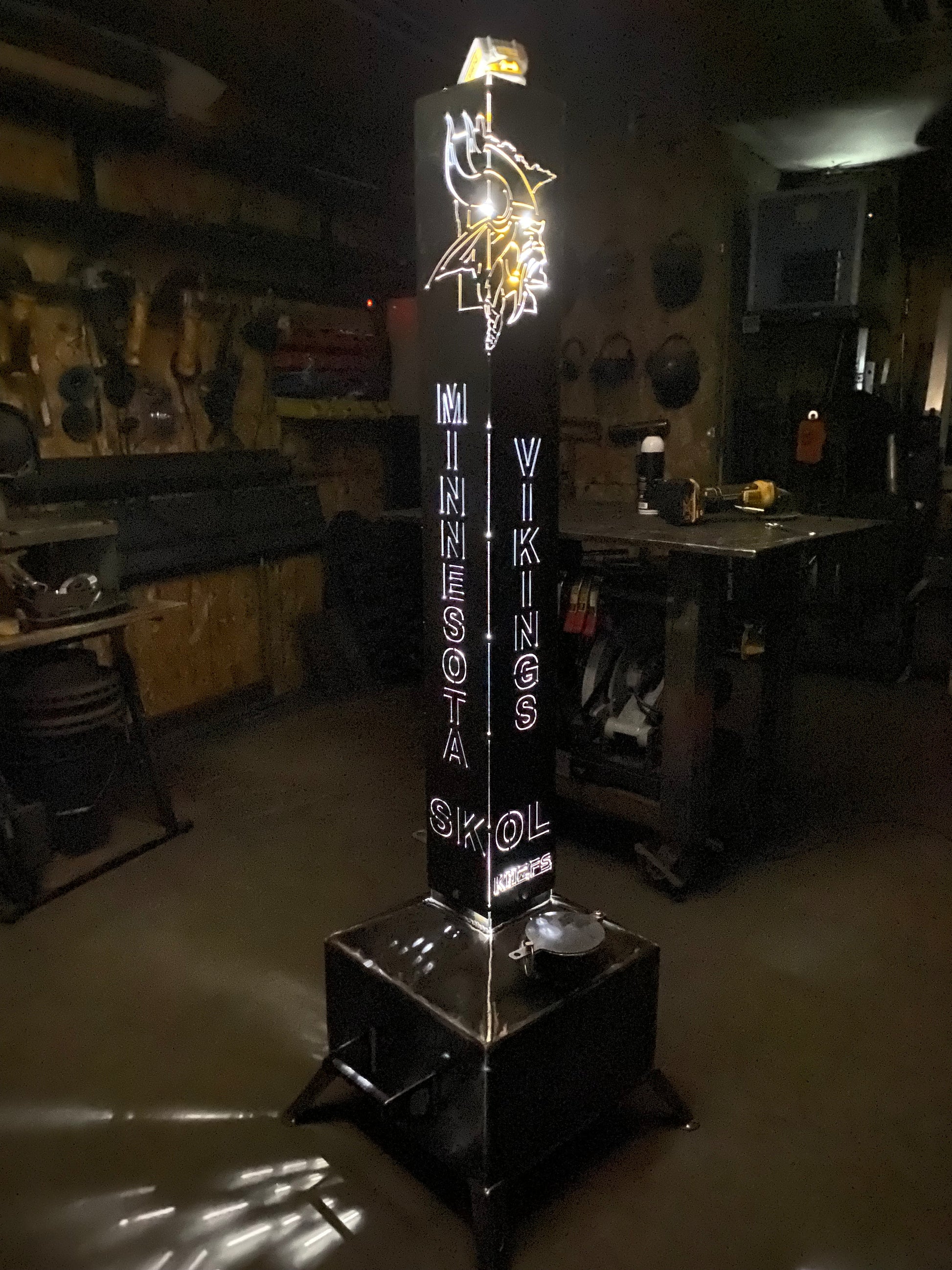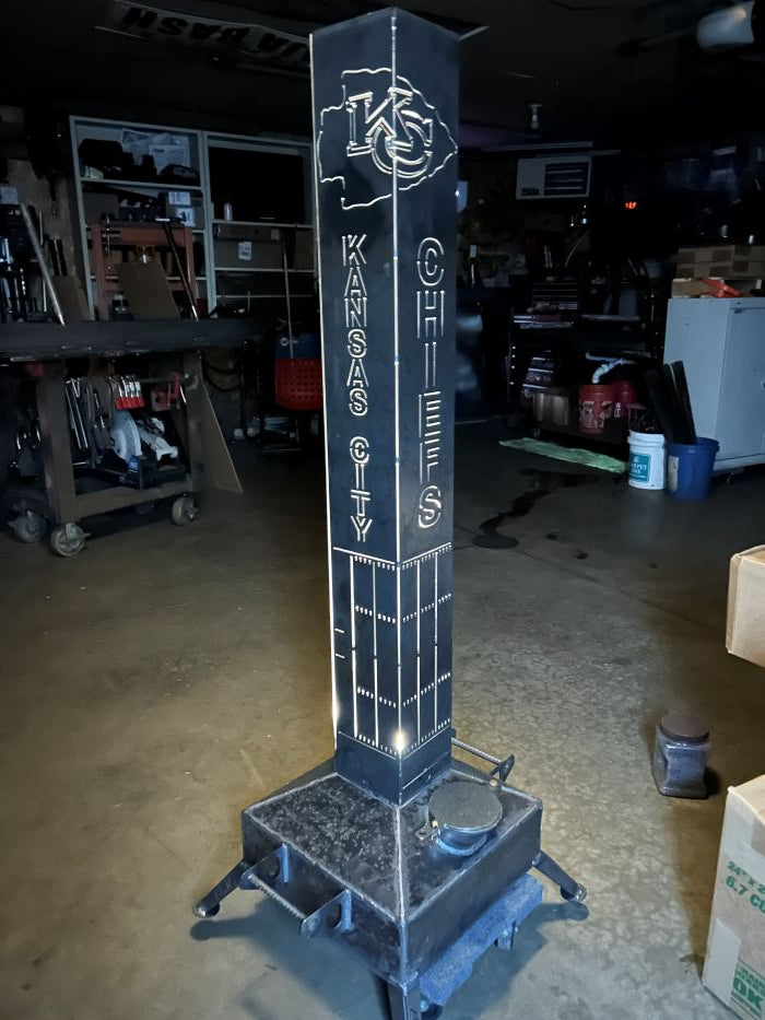 DIY Smudge Pot weld it Yourself and save. Pick from a 5 gallon or 10 gallon base. Both bases have a 20” x 20” footprint. This 48" Chimney comes Team Mascot and Name, a proof will be emailed prior to cutting for final approval. All parts are CNC cut and easily bent by hand with relief cuts designed in, the chimney comes pre-bent, tack it all together then final weld it.