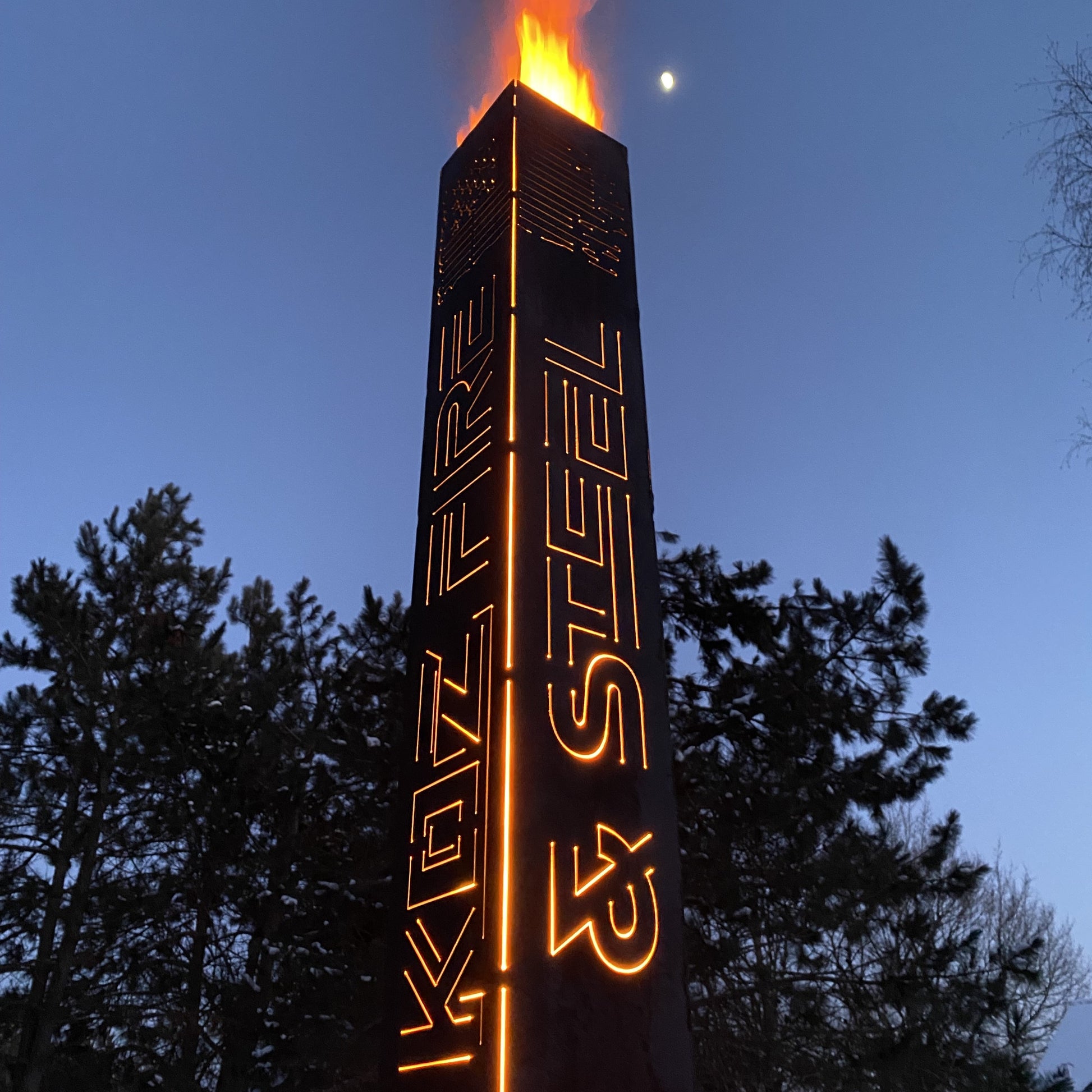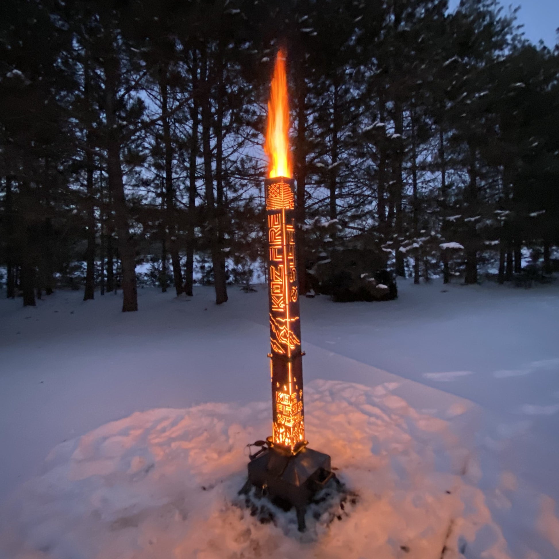 Fully welded ready to use Smudge Pot . Pick from a 5 gallon or 10 gallon base. Both bases have a 20” x 20” footprint. This 48" Chimney comes with a mountain cut out on top, Jeep Grill & Text, pick from the tire tracks below.